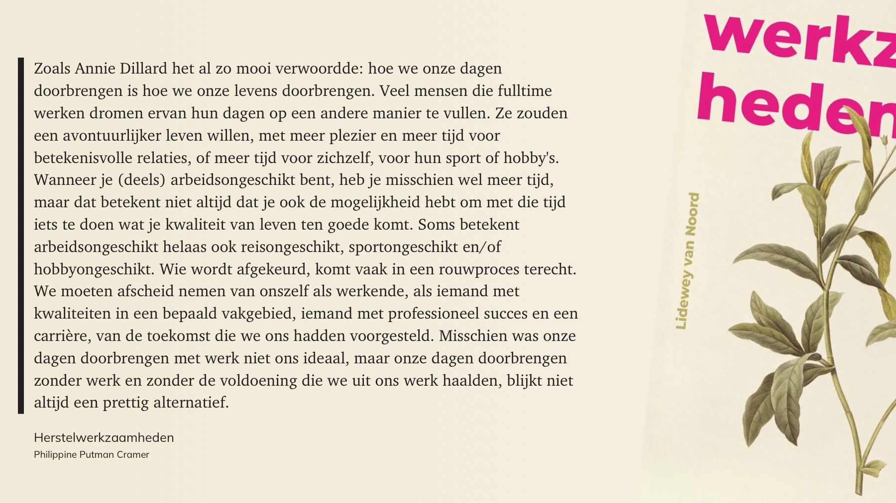 Drie jaar geleden las ik Herstelwerkzaamheden. Philippine Putman Cramer en Lidewey van Noord werden geconfronteerd met ernstige en chronische ziekte - door een hersenbloeding en long-covid. Samen schreven ze een prachtig boek over hoe dat is, ziek zijn en je weg vinden.